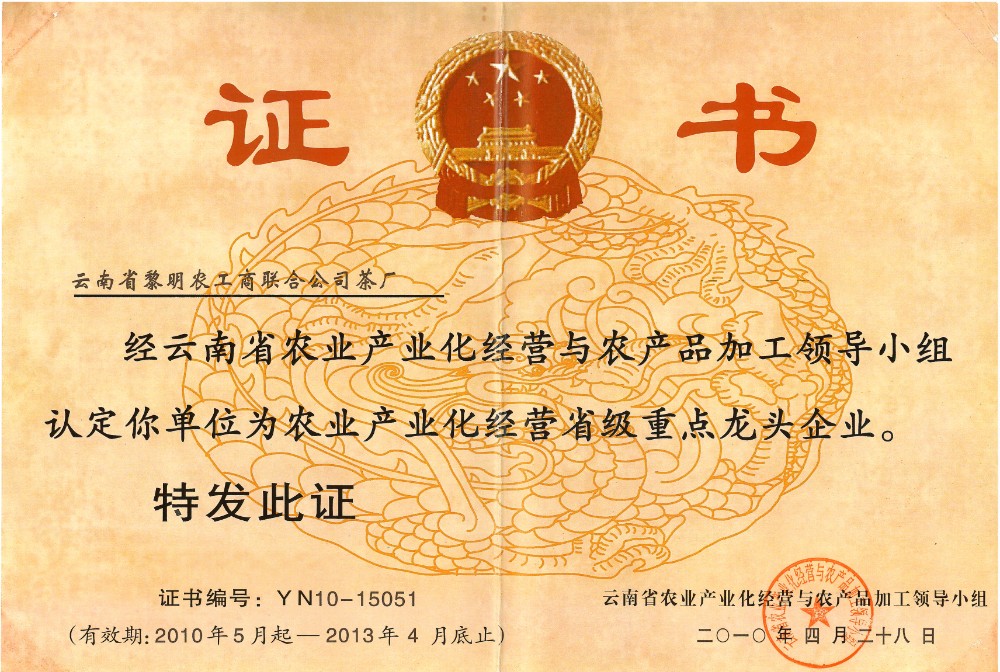 榮譽(yù)資質(zhì) 2010云南省重點(diǎn)龍頭企業(yè)