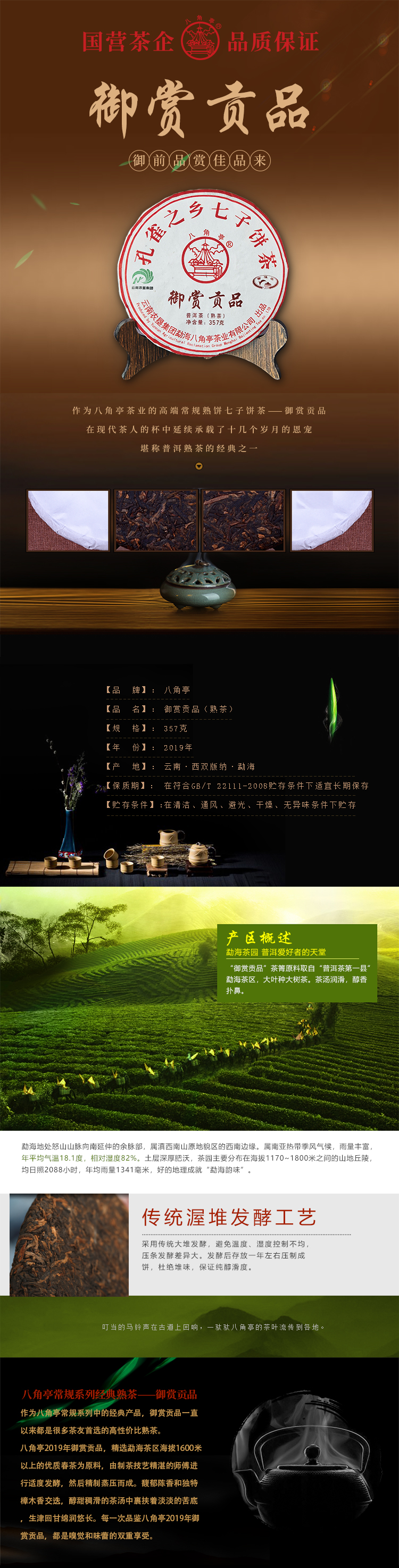 云墾茶業(yè)集團(tuán)下屬茶葉生產(chǎn)企業(yè)——云南農(nóng)墾集團(tuán)勐海八角亭茶業(yè)有限公司原名黎明茶廠,是我國(guó)歷史最為悠久的茶企之一,曾位列“中國(guó)普洱茶十大知名品牌”“十大最受歡迎茶葉品牌”、“中國(guó)普洱茶十大暢銷品牌”中,成為今天市場(chǎng)上最有影響力的品牌之一。公司產(chǎn)品獲得“綠色食品”、ISO9001、 HACCP和云茶品牌(YC)4項(xiàng)認(rèn)證,連續(xù)獲得“云南名牌農(nóng)產(chǎn)品”“云南名牌產(chǎn)品”“云南省著名商標(biāo)”等品牌榮譽(yù),公司生產(chǎn)的多款普洱茶在歷次專業(yè)評(píng)比中多次獲得特等金獎(jiǎng)和金獎(jiǎng)。在2018第五屆中國(guó)企業(yè)五星品牌論壇上,云南農(nóng)墾集團(tuán)勐海八角亭茶業(yè)有限公司上榜中國(guó)普洱茶行業(yè)影響力品牌——“金芽獎(jiǎng)”,公司負(fù)責(zé)人陳勝軍先生獲“陸羽獎(jiǎng)”,被授予2017“國(guó)際十大杰出茶人”榮譽(yù)稱號(hào)。