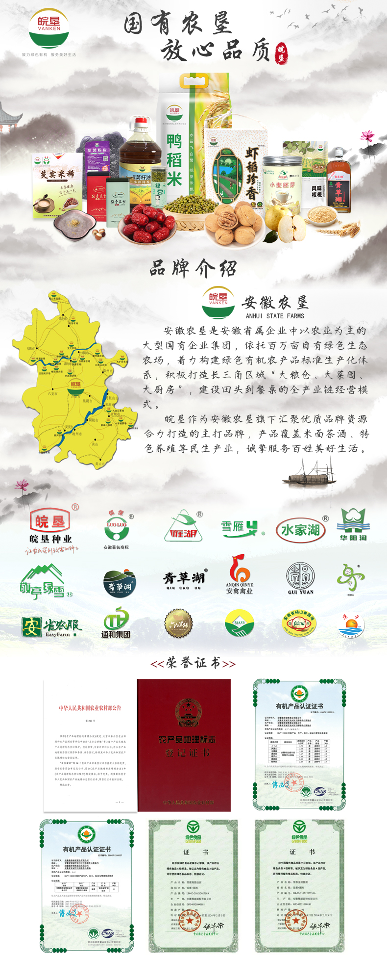 安徽省農(nóng)墾集團(tuán)有限公司是1998年經(jīng)省政府批準(zhǔn)由原省農(nóng)墾農(nóng)工商聯(lián)合總公司(前身為省農(nóng)墾廳)改制成立的國有獨(dú)資公司,原由省委、省政府直接管理,2004年納入省國資委監(jiān)管序列,與安徽省農(nóng)墾事業(yè)管理局系一個(gè)機(jī)構(gòu)、兩塊牌子、一套班子,系經(jīng)濟(jì)建設(shè)與社會(huì)事業(yè)同步發(fā)展的綜合性系統(tǒng)。省農(nóng)墾集團(tuán)是安徽省規(guī)模最大的國有現(xiàn)代農(nóng)業(yè)企業(yè),2012年末,資產(chǎn)總額近70億(不含土地),下轄全資子公司42個(gè),控股子公司36家,境外子公司1個(gè);其中農(nóng)、茶、果場(chǎng)20個(gè),主要分布在皖南4個(gè)、沿江2個(gè)、沿淮及淮北14個(gè),海外農(nóng)場(chǎng)3個(gè),土地面積7.5萬畝;專業(yè)公司6個(gè)、建筑公司1個(gè)。墾區(qū)總?cè)丝?2.2萬人,其中,職工2.65萬人,離退休3萬人;擁有土地面積100萬畝,其中,耕地45萬畝,林地11.8萬畝,茶果園7萬畝,養(yǎng)殖水面1.5萬畝。墾區(qū)擁有農(nóng)業(yè)科研所15個(gè),科技人員2300多人。