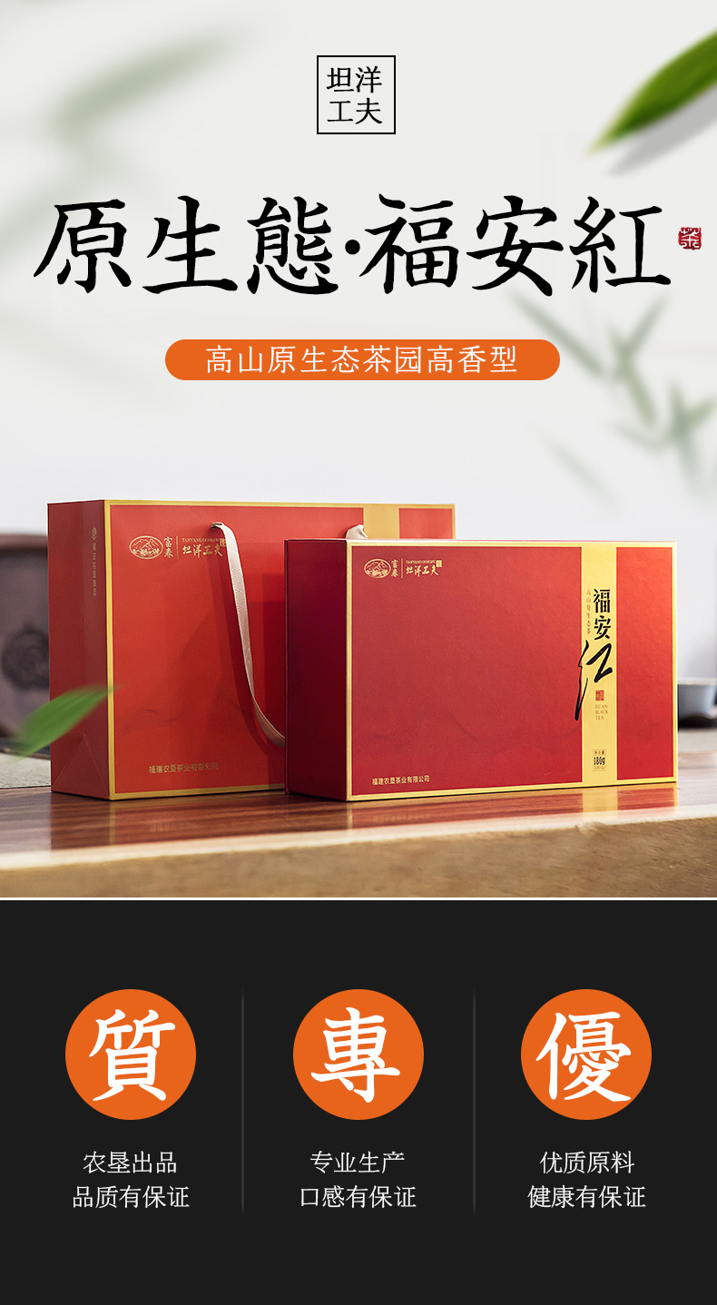 公司下屬的福安市坦洋茶場地處福建省福安市西北部的白云山麓下社口鎮坦洋村,創辦于1958年,現有生態茶園基地1800多畝,是坦洋工夫專業生產廠家,福建省外貿坦洋工夫生產基地,坦洋工夫產品在國內外重大茶事活動中屢獲“茶王”稱號。