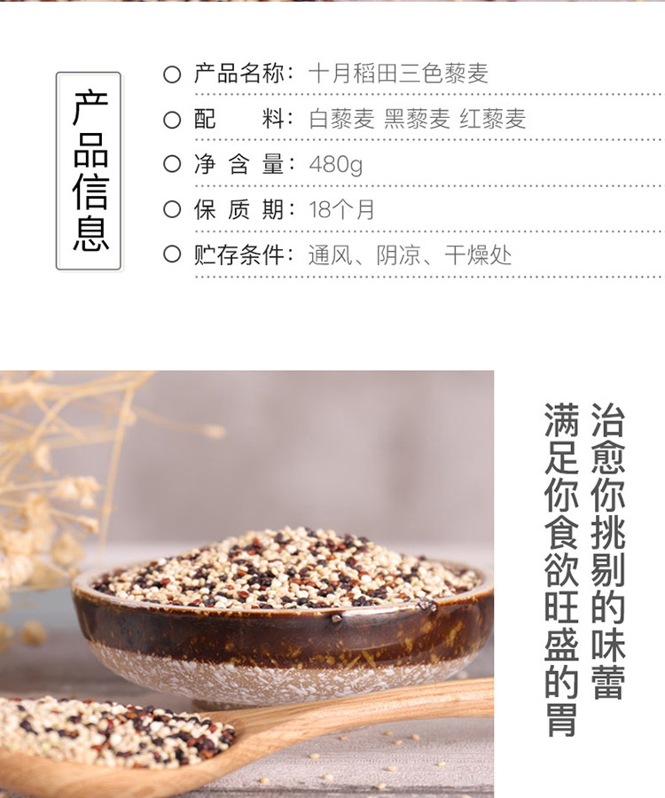 十月稻田三色藜麥紅藜麥、黑藜麥白藜麥雜糧有機(jī)粗糧代餐480g