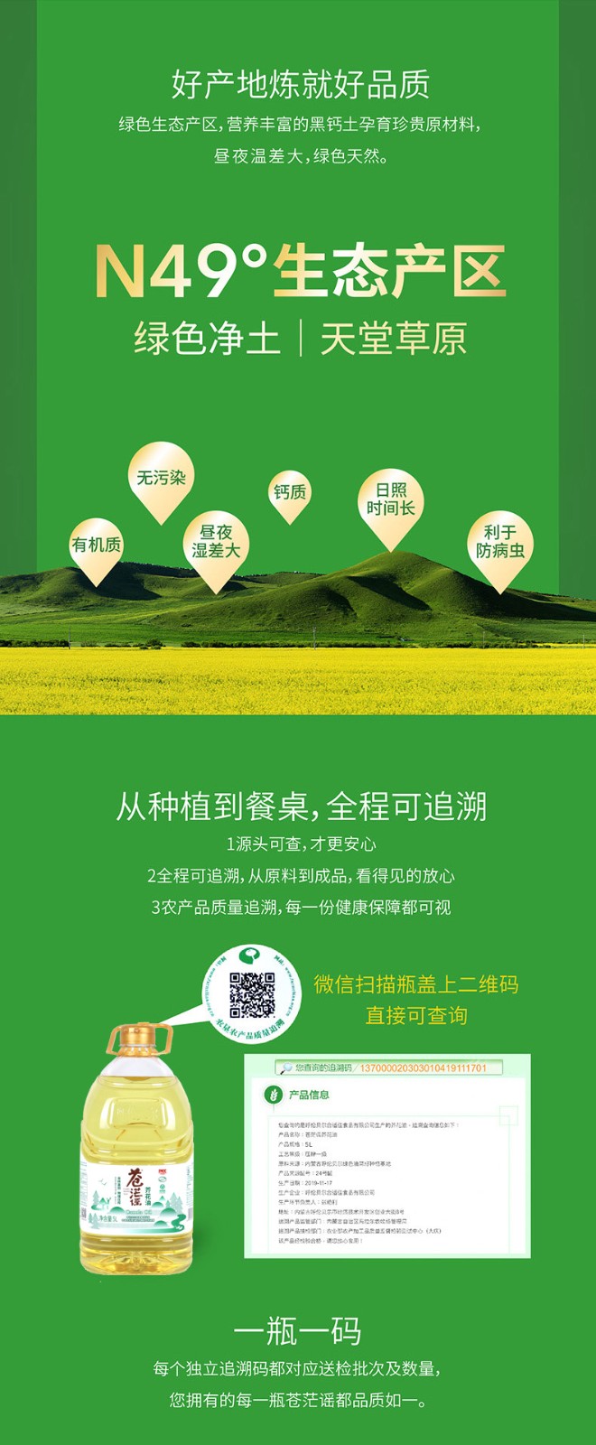 呼倫貝爾農墾出品蒼茫謠芥花油非轉基因純正食用油5L大桶低油煙